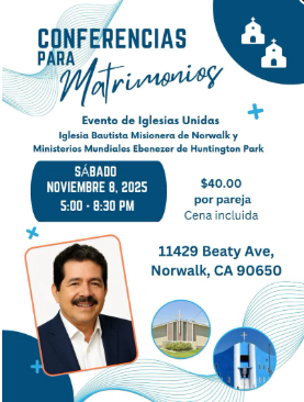 Sábado, 8 de Noviembre, 5p.m - 8:00p.m. $40.00 por pareja, incluye cena. Favor de Registrarse con Elito y Lutgui lo antes posible.